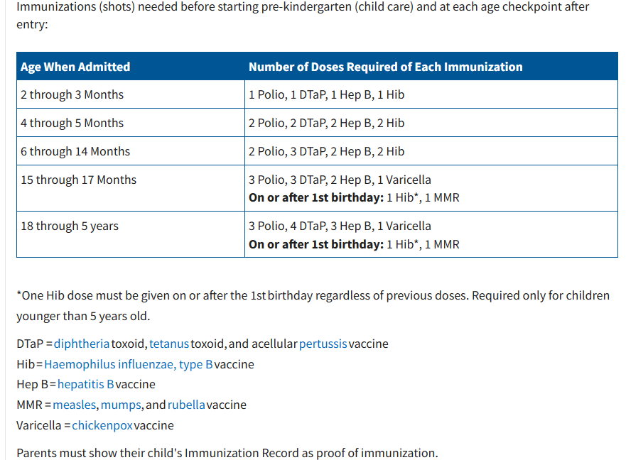 Email completed paperwork to admin@treehouseclublamesa.com or drop off in person on your facility tour day. Once all paperwork is completed in full and submitted, you can start booking sessions for your child. In addition to these documents, we will also need proof that child is up to date with standard vaccinations before child can receive care. This does not include optional vaccinations such as COVID-19 or flu. See vaccination information below.